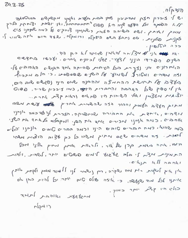 ״זוכר את הברכה שכתבת לי עם התבלינים, על האיזון ואיך הדברים משלימים ואיחלת לי שאדע להשתמש בהם בתבונה״(הודי)