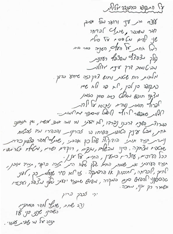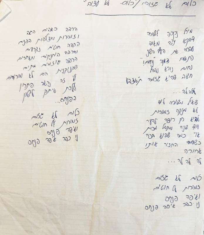 ״תודה על הרוך, התמימות הפשוטה הליטוף, החיבוק, המילה הטובה על הכל בו נשמת האדם עמוסה״(אריק איינשטיין)